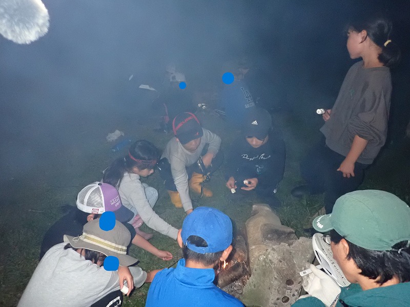 18時半過ぎにはどの班も夕食を食べ終え、片付けも終わったので、ご褒美のデザートタイム!焼きマシュマロをいただきました。