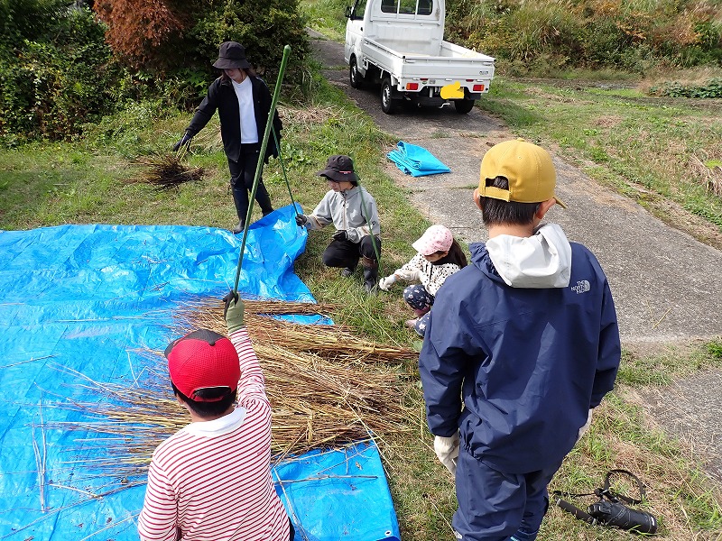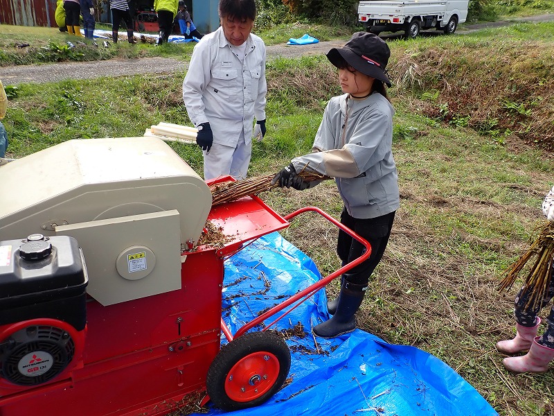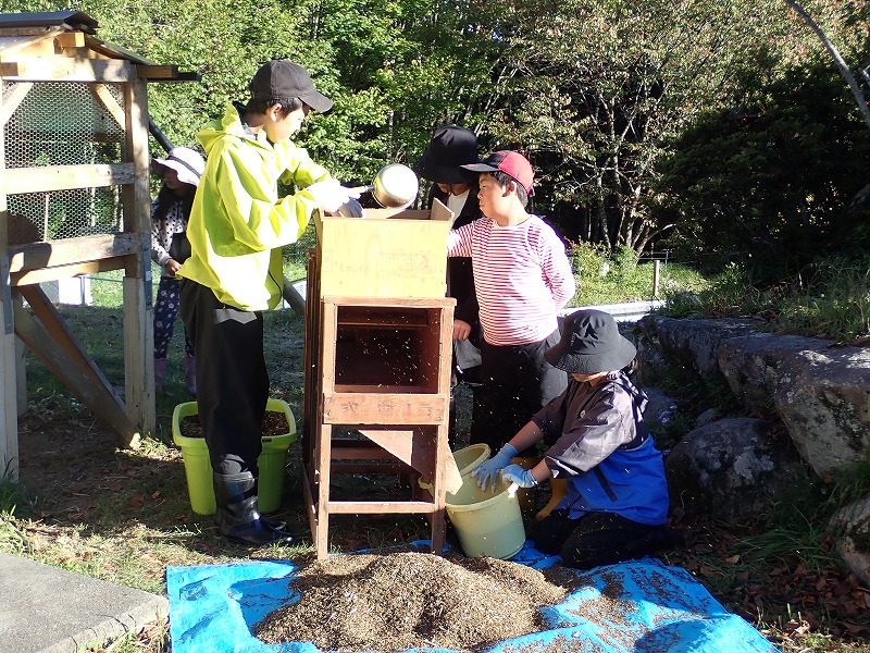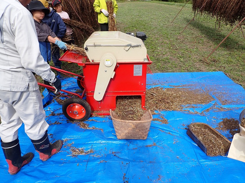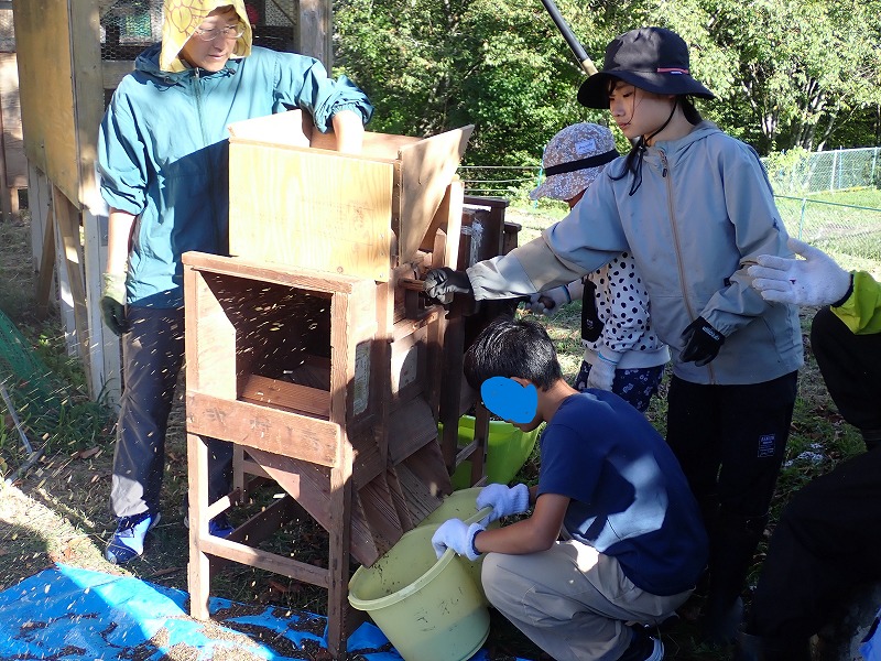 唐箕は稲の脱穀の後、籾の選別にも使ったのでみんな上手に使えていました。特にAsさんが唐箕のハンドルを回した時はほとんどごみが混ざらずきれいに選別されていました。