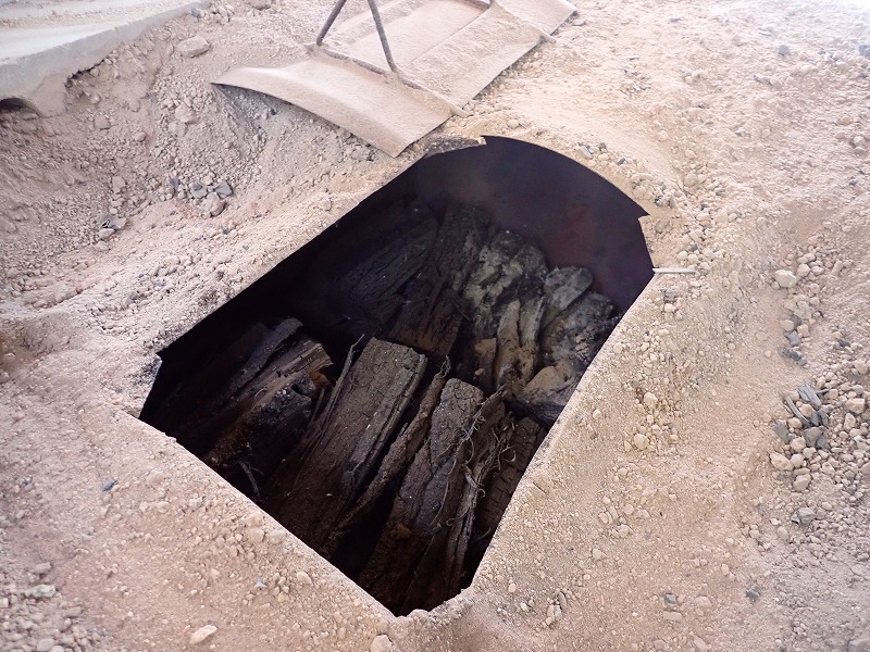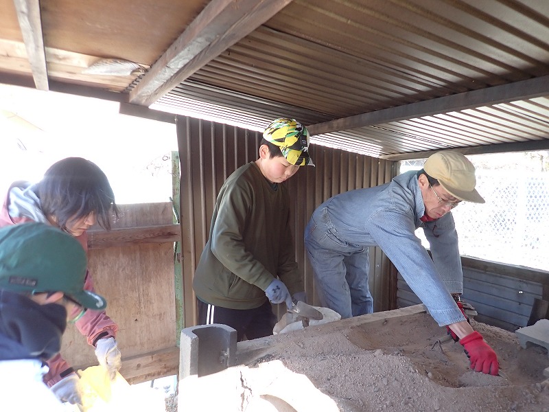 まずは、保温のために被せていた土や、焚口の中の灰を片付けました。