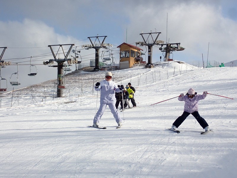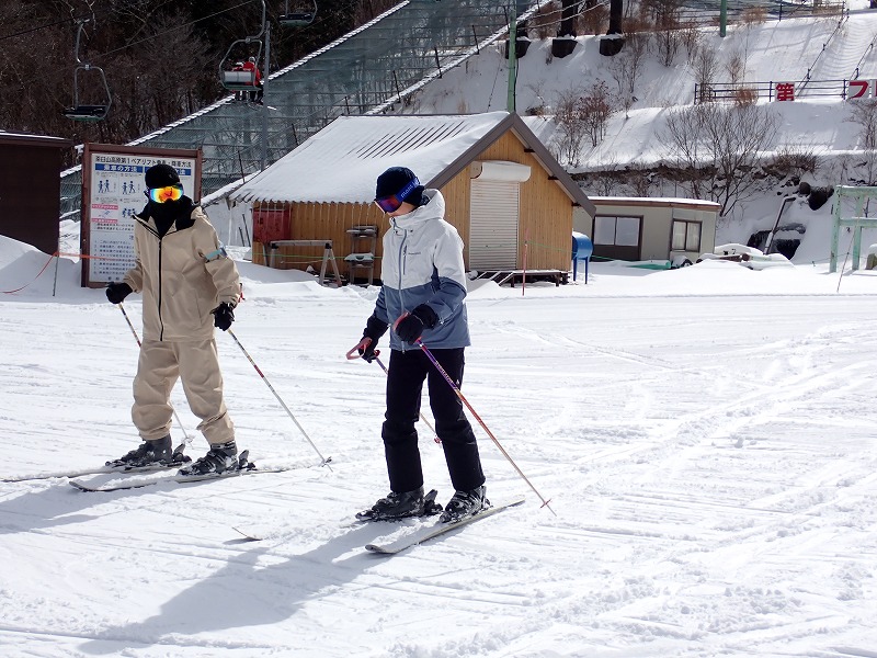 今回も、初心者チームと経験者チームに分かれて活動開始。「ハの字滑りをマスターする!」「曲がる時以外はなるべく板を揃えて滑る!」「パラレルターンに挑戦する!」など、それぞれ目標を掲げて活動しました。