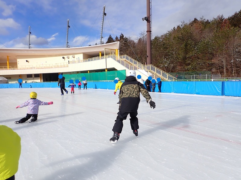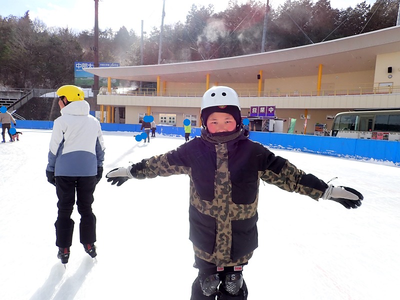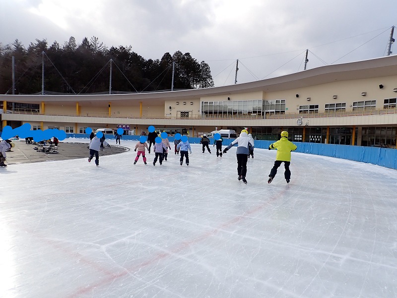 8日(日)は、村の小中学生にも呼び掛けて“クリスタルパーク恵那スケート場”へ、スケートをしに行きました。